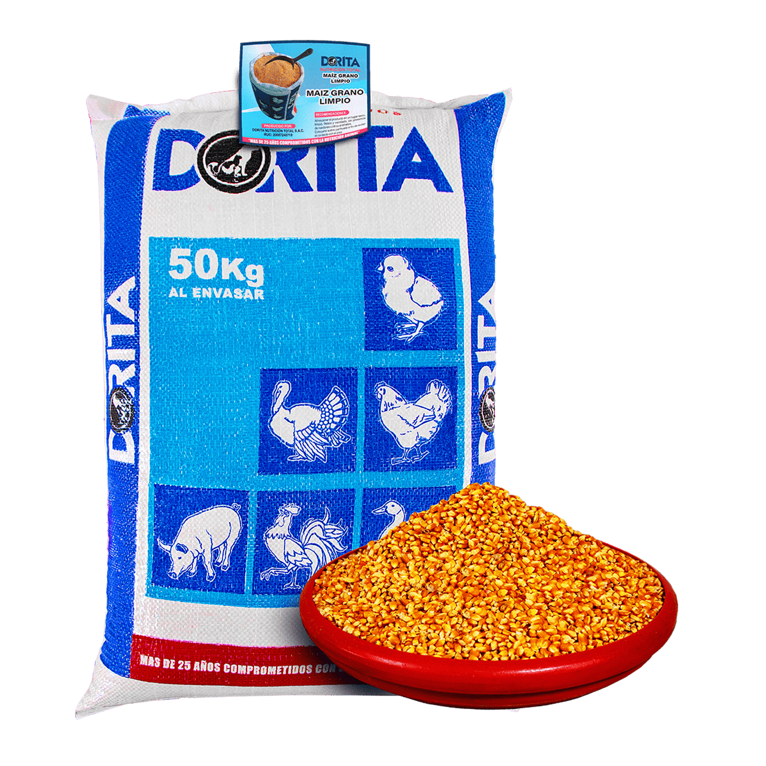 La materia prima de maíz, pasa por un proceso de selección y limpieza a través de una máquina industrial, obteniendo un grano de maíz amarillo limpio.